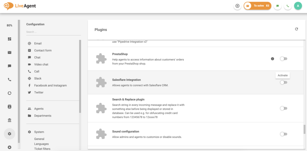 Puedes lograr esto eligiendo software que se integre con tu proveedor de VoIP. La mejor opción aquí podría ser el software de centro de llamadas de LiveAgent, que es compatible con más del 99% de ellos.