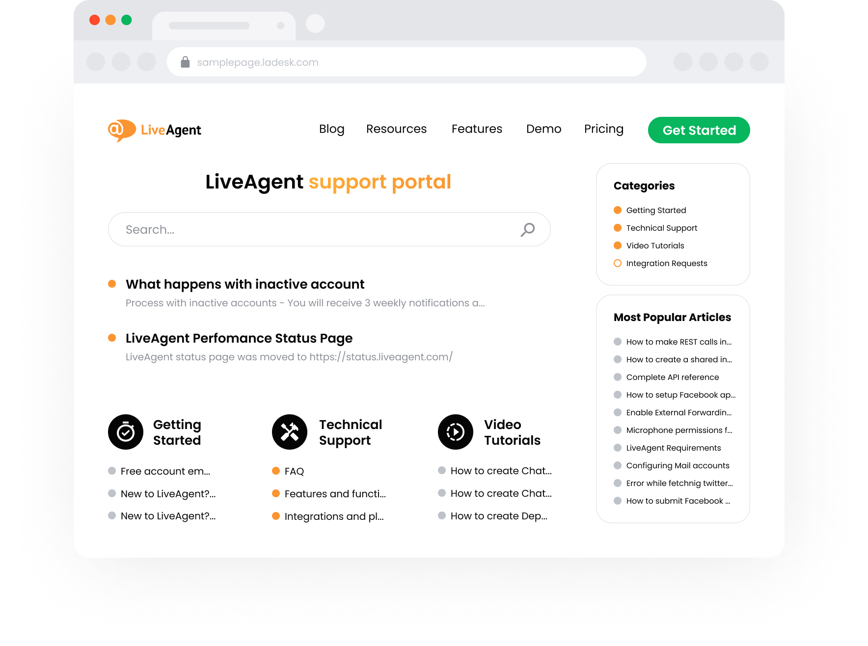 ¿Está teniendo problemas con las consultas de los clientes y desea que se resuelvan por sí solas? El software de base de conocimientos de LiveAgent le permite tener su propia base de conocimientos y un sitio web de portal de clientes dedicado. Llénelo con artículos educativos y preguntas frecuentes para que los clientes puedan ayudarse a sí mismos o interactuar con ellos en los foros. Pruébelo hoy y vea cómo puede facilitar su trabajo.