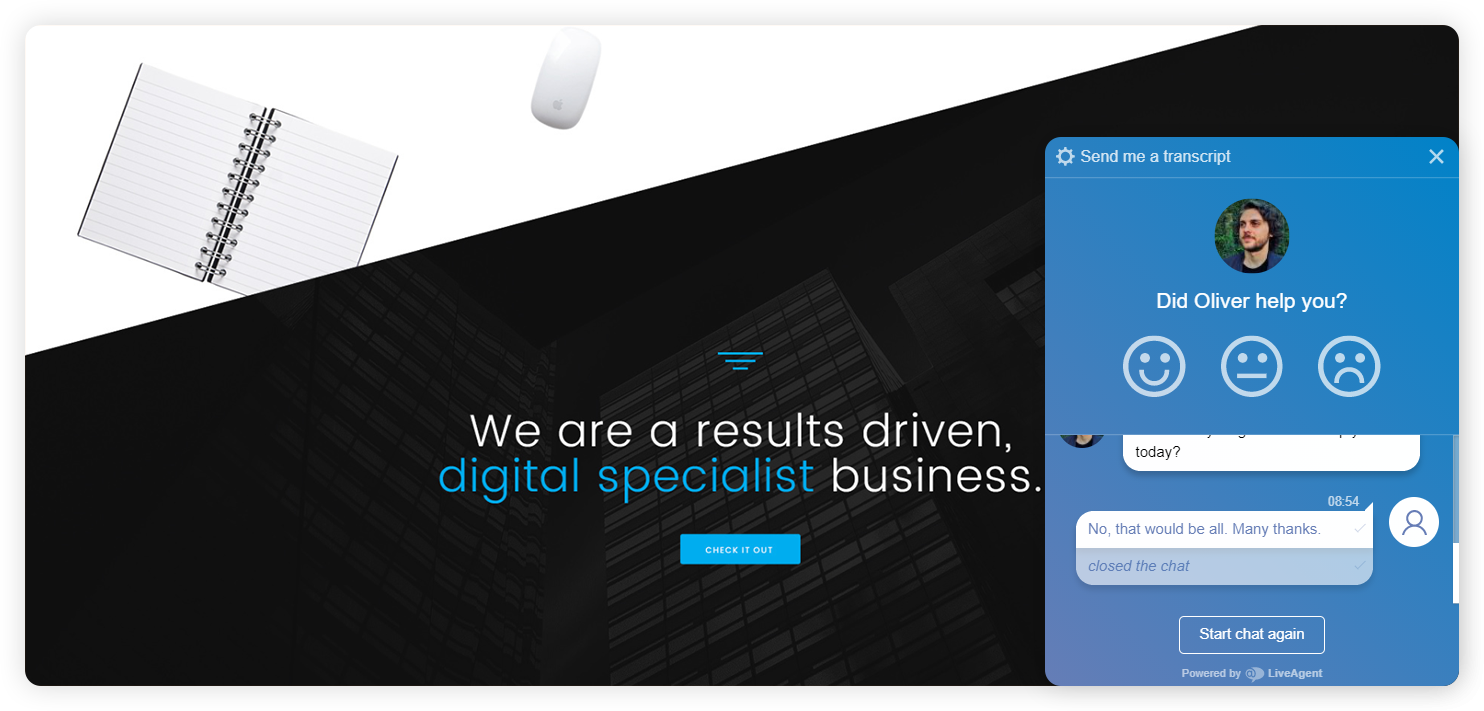 Live chat is tightly integrated into our multi-channel ticketing system that can handle all important customer channels.