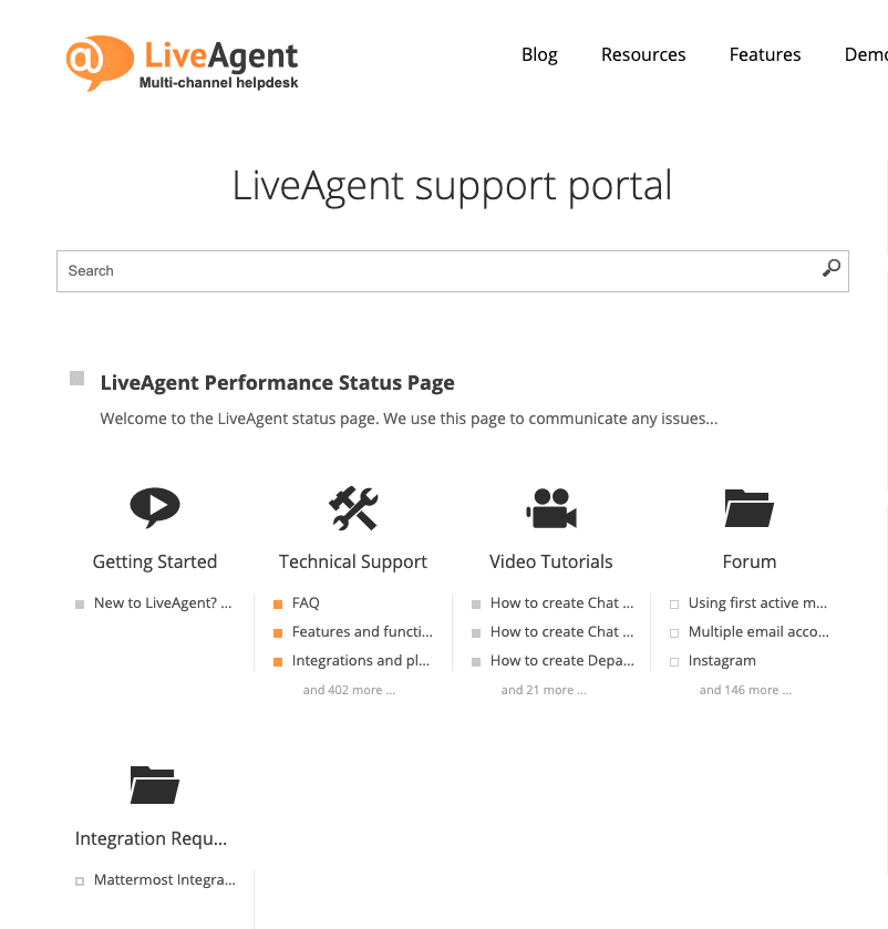 LiveAgent ofrece una variedad de funciones para ayudar a las empresas a conectarse con los clientes. También ofrece una amplia biblioteca de recursos para sus clientes. Estos recursos incluyen publicaciones de blog, plantillas, glosarios, pruebas de mecanografía, un complemento de WordPress, directorios, seminarios web, una academia y mucho más.