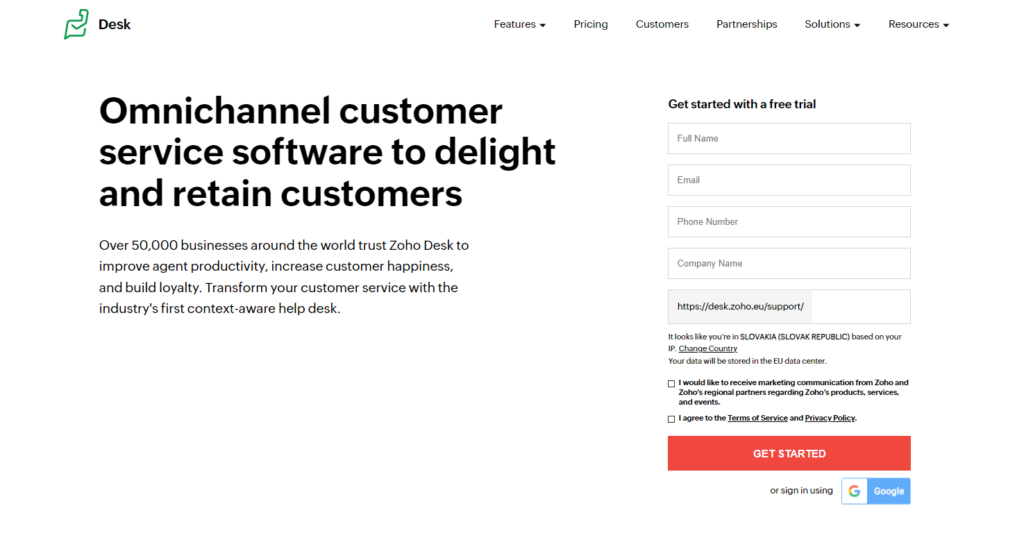 Zoho Desk es compatible con los equipos de servicio al cliente y los vendedores como un software de experiencia del cliente. También ofrece una plataforma de reservas para ayudar a los clientes a programar citas.